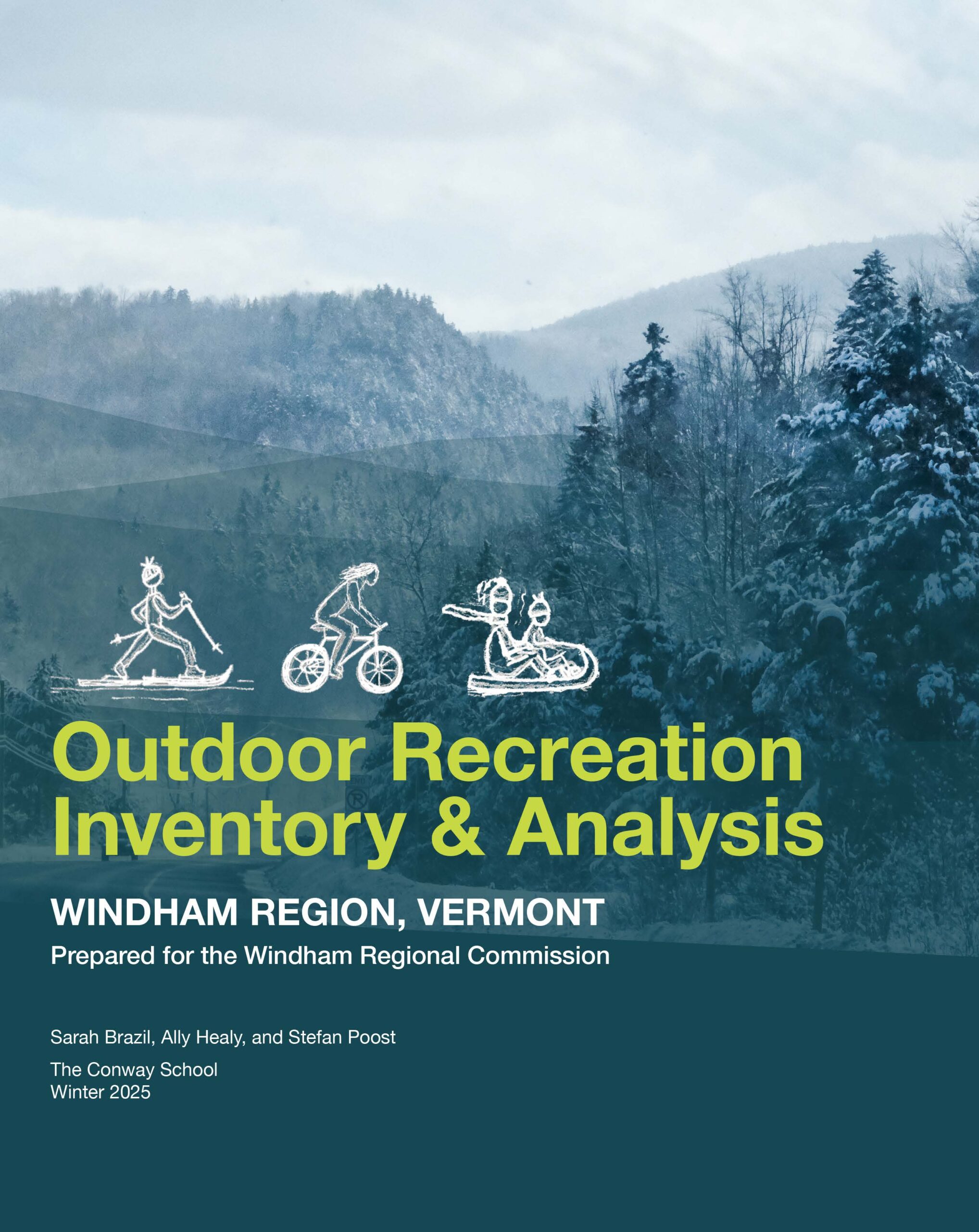 The report includes thematic analyses on three topics that affect all recreation types: climate change, access and connectivity, and quality of life. These analyses provide conceptual frameworks for understanding these topics as the client team develops an outdoor recreation economy plan for the Windham Region.